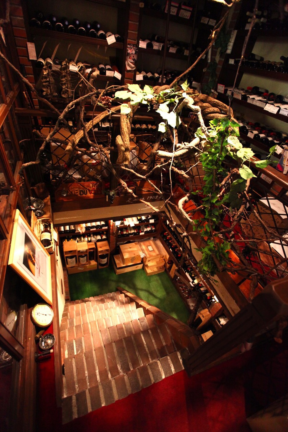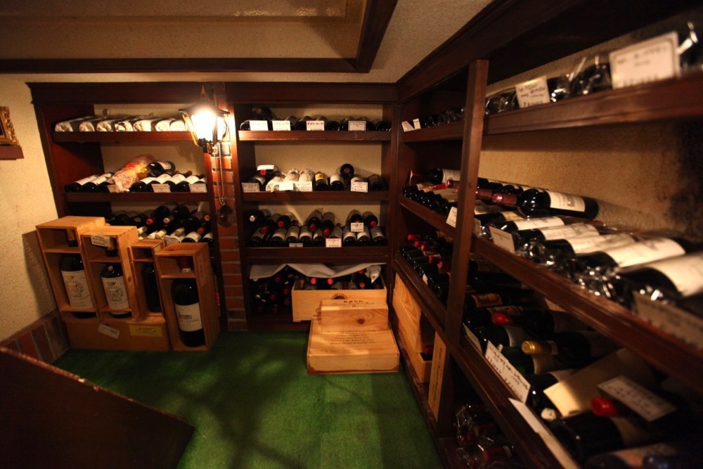 Cellar Wine Cellar 1F・B1 冷凍機を備えた1Fと地下1F部分からなるワインセラールームは、適正な温度管理を実現し、地下水を利用して湿度を得ているので、ワインを熟成させる上で理想的な保存環境にあります。その為に、コルクが乾いて劣化する心配もなく、常に健康で鮮度の高い瑞々しいワインをお客様に提供する事を可能としております。